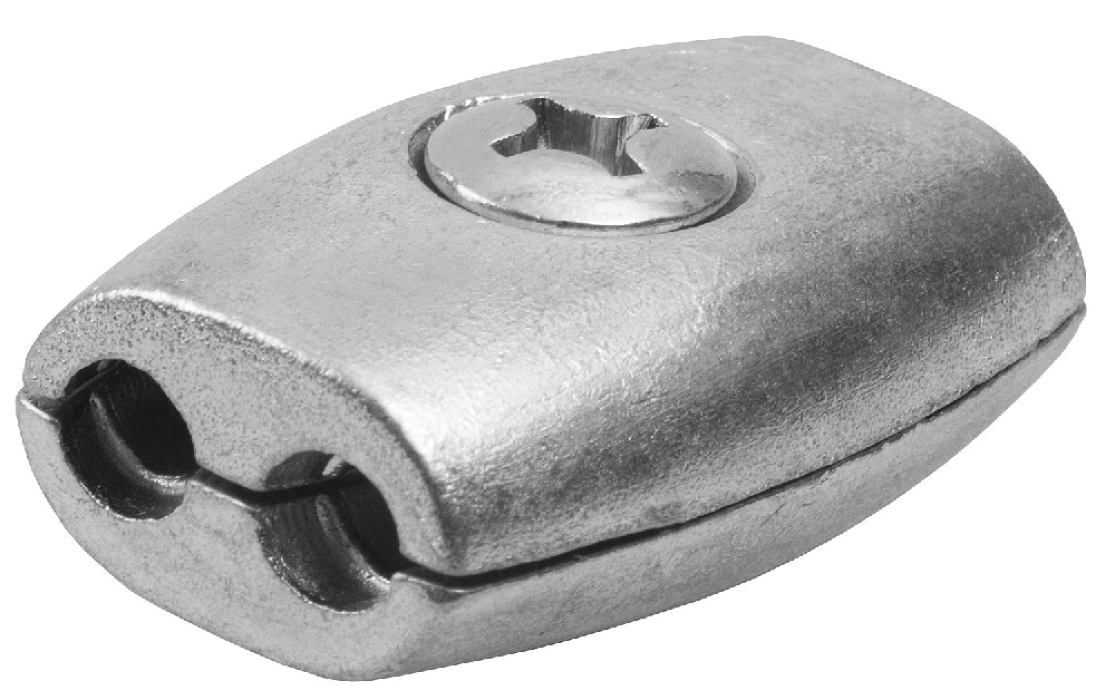 • Используется на тросах без оплетки ПВХ (если трос имеет оплетку, ее необходимо снять перед установкой зажима)