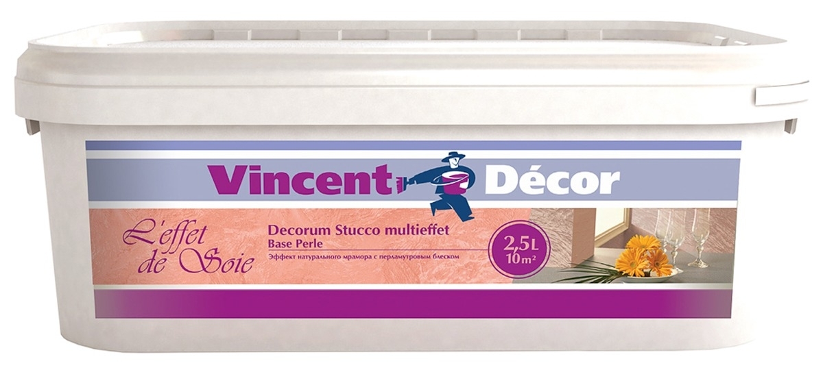 Декоративная штукатурка Vincent Decor / Винсент Декор Stucco Multieffet base Perle под обои, для внутренних работ, водно-дисперсионная, белая, 2.5л / строительные смеси