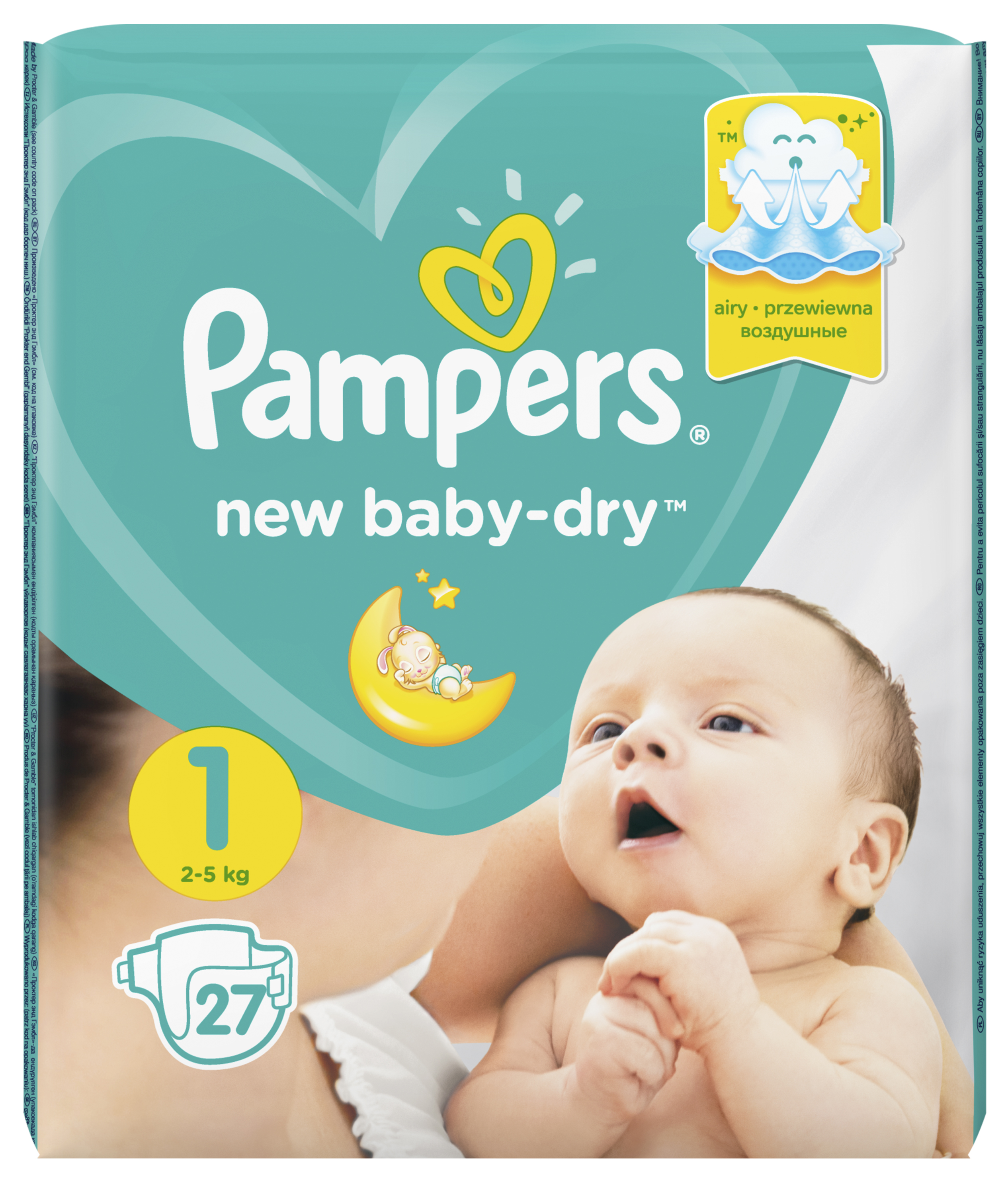 Подгузники детские Pampers New Baby-Dry реализуются в индивидуальной упаковке. Размер — 1 (2-5 кг). Изготавливаются с использованием самых безопасных материалов и технологий. Содержат в своем составе органический хлопок. Количество в упаковке — 27 шт.