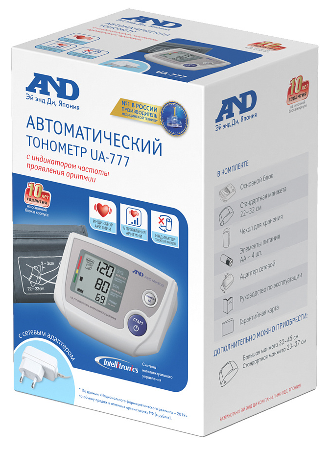 Для проведения некоторых медицинских исследований дома существует множество различных устройств, приспособлений и аксессуаров. К ним также относится и тонометр A& D UA-777 автоматический с адаптером. Он предназначен для измерения артериального давления и частоты пульса. Применяется в качестве индивидуального средства контроля, либо динамических наблюдений в медицинских организациях.