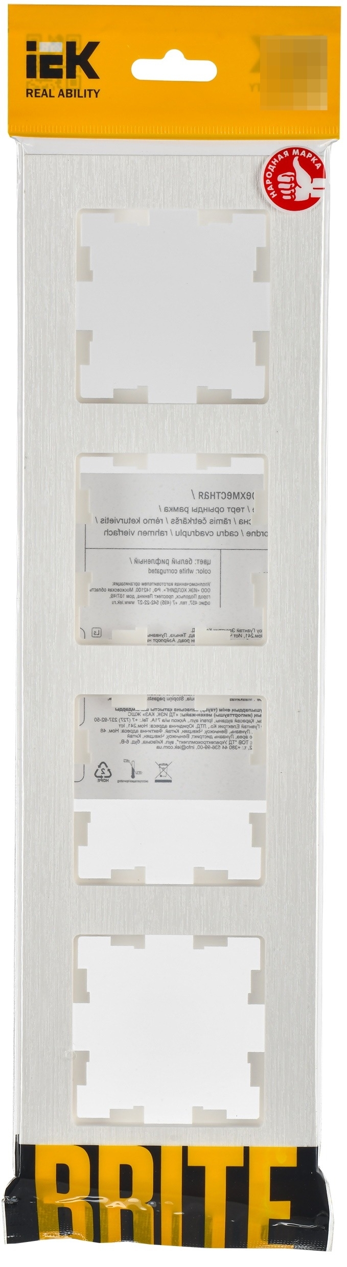 Рамка электроустановочная IEK / ИЕК BRITE BR-M42-51-K01 4-постовая, из пластика, белая рифленая, 400×110×11мм / электрика