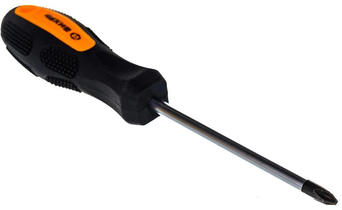 - Отвертка крестовая Вихрь с двухкомпонентной рукояткой, из хромованадиевой стали, черная, наконечник PH2, стержень 100мм - 1шт.