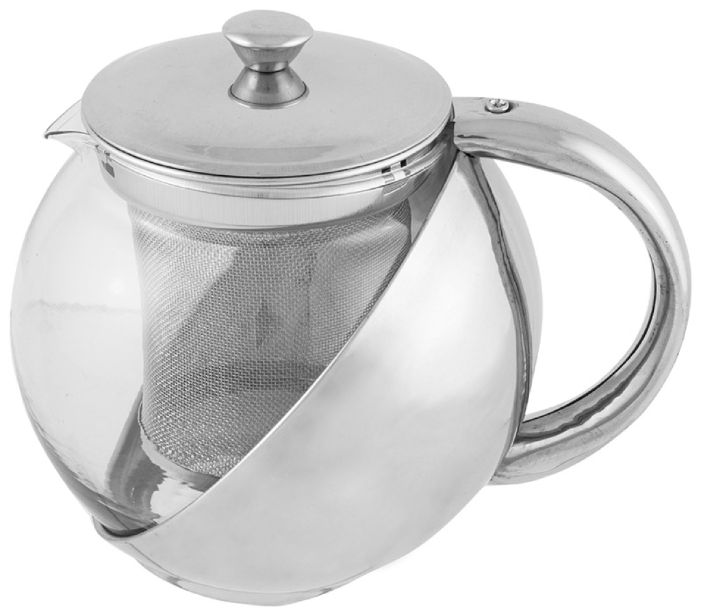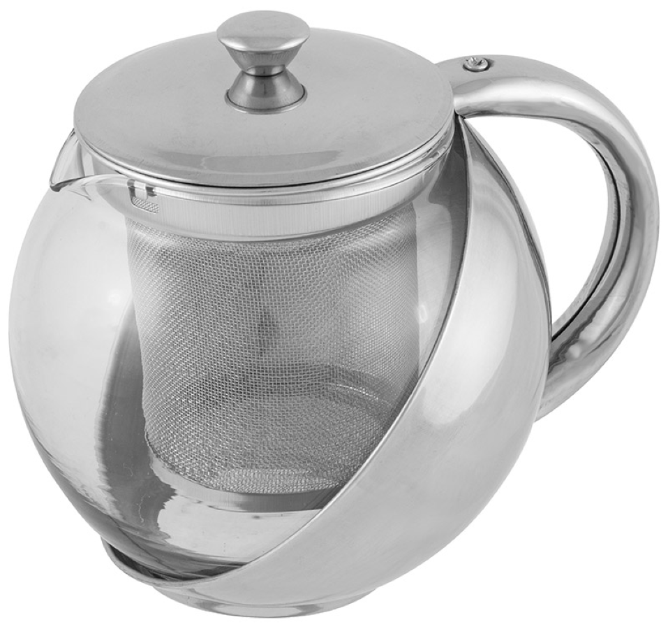 Чайник заварочный Mallony / Маллони с фильтром, в корпусе из стекла и нержавеющей стали, серебристый, 500мл / товары для дома