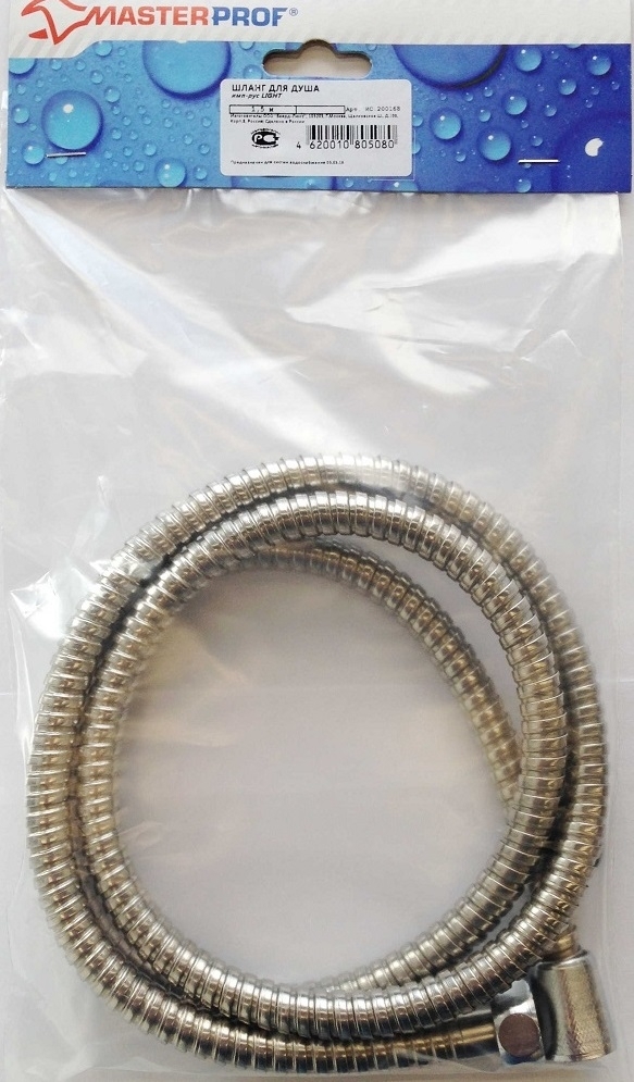 Шланг для душа Masterprof / Мастерпроф Light ИС.200168 из металла, цвет хром, 1/2", 150см / сантехника