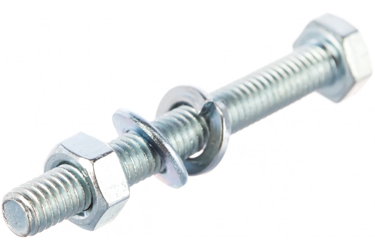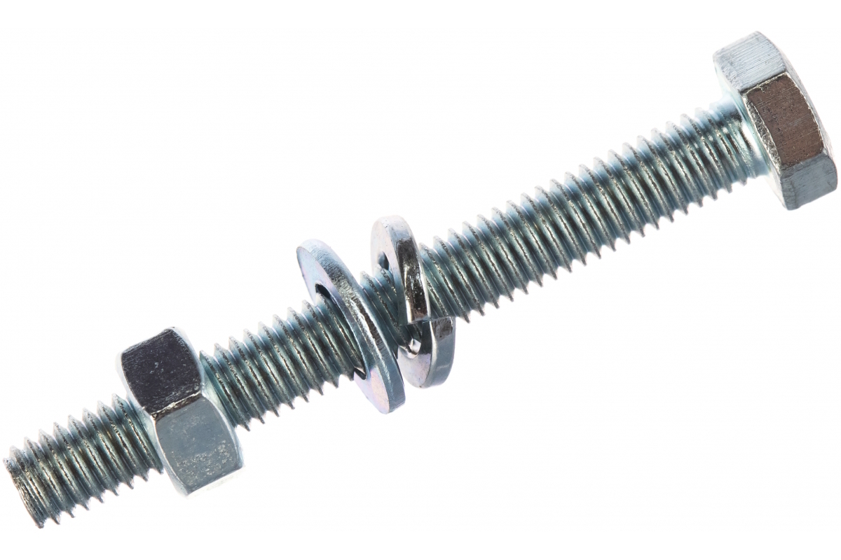 Болт Стройбат с гайкой и шайбой метрический из оцинкованной стали, DIN933, 6×50мм, 6шт. / крепеж