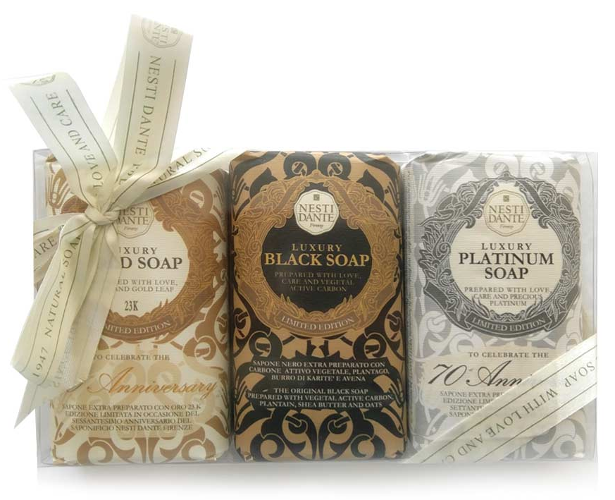 — К 70-и летию создания компании Nesti Dante выпустила мыло Luxury Platinum Soap содержащее драгоценную платину, которая, благодаря своим качествам, высоко ценится не только в ювелирной области, но и в медицине. Мыло Luxury Platinum Soap (Юбилейное платиновое) обладает тонким ароматом флорентийской камелии и белого тосканского жасмина. .