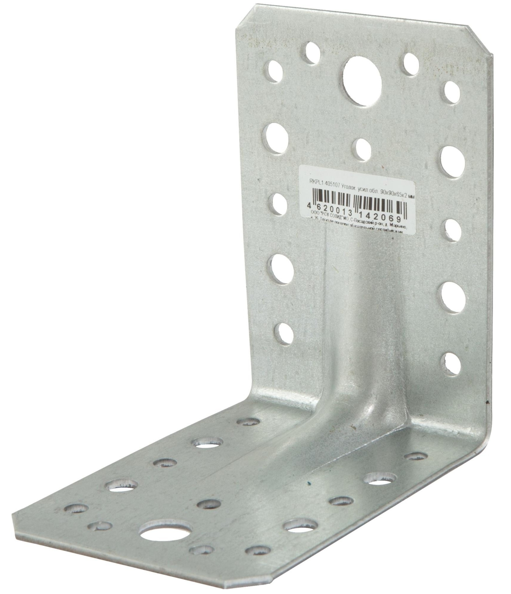 Уголок крепежный усиленный Rock solid connection RKPL1 90х90х65х2мм 405107. Перфорированный усиленный уголок широко используется в частном и коммерческом домостроении, мебельном производстве, проведении строительных и отделочных работ, монтаже инженерных систем и коммуникаций. С его помощью выполняется крепление несущих элементов конструкции стропильно-подстропильной системы, прочих нагруженных элементов в строительстве.