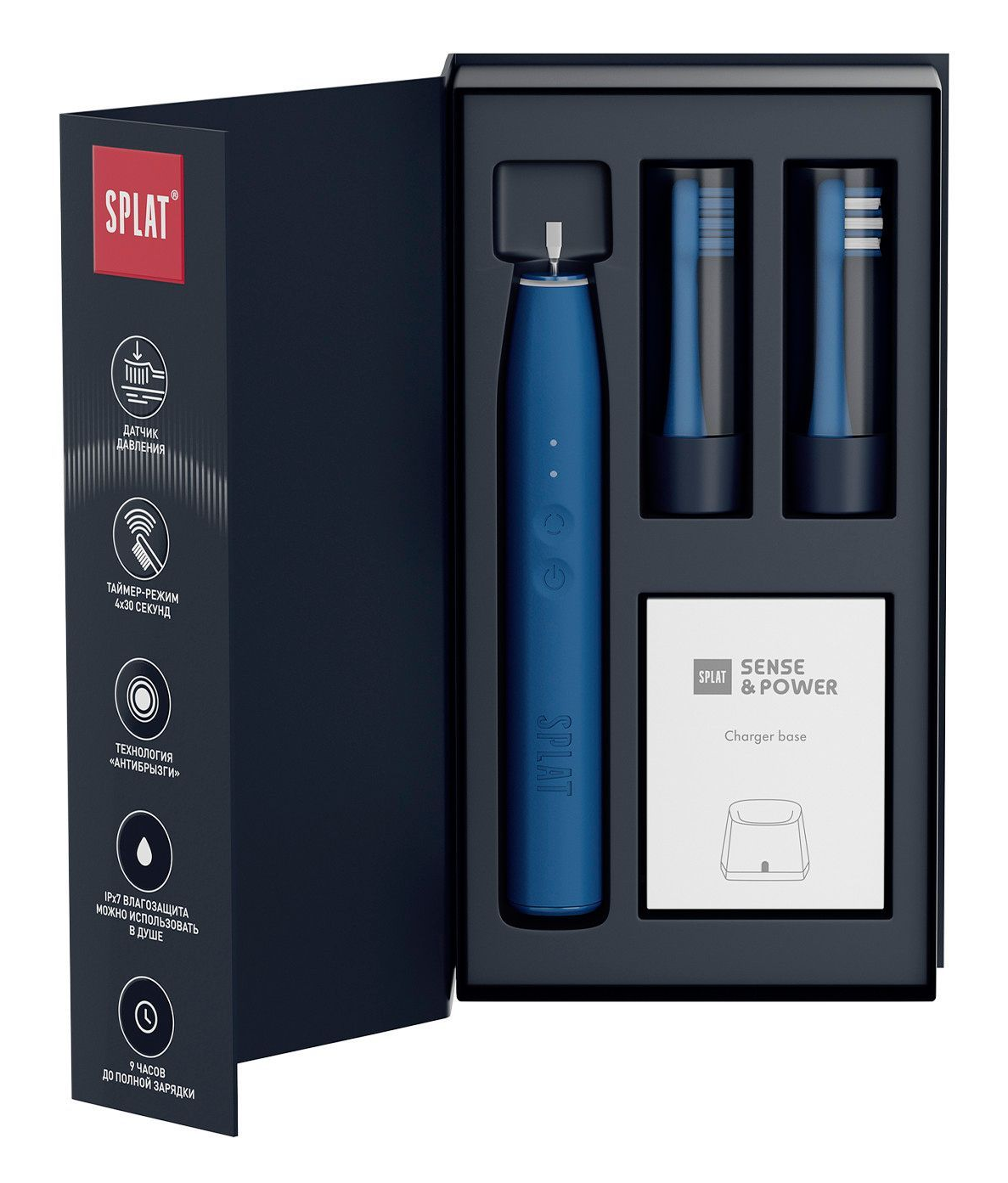 Электрическая звуковая зубная щетка SPLAT Sense& Power обеспечивает комплексный уход за полостью рта, в том числе для тех, кто использует брекеты. Она эффективно очищает межзубные промежутки и борется с образованием зубного камня.