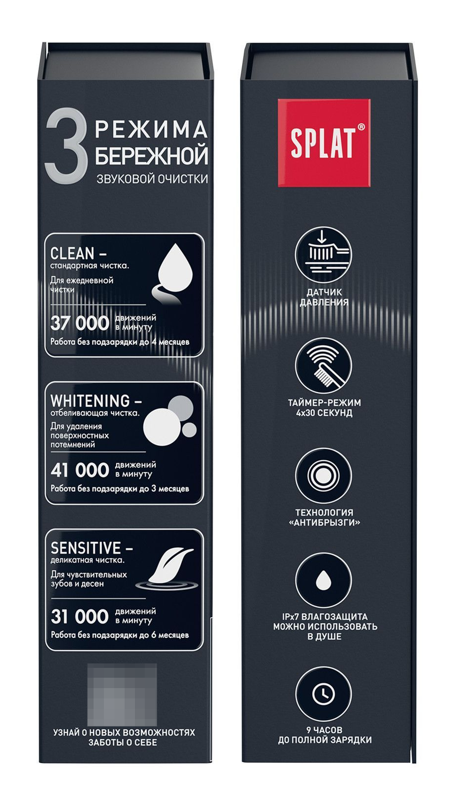 Ультразвуковая Электрическая зубная щетка Splat обеспечивает эффективный бережный уход за полостью рта. Зубная щетка звуковая отличается стилем и минималистичным дизайном, а также приносит пользу, красоту и здоровье Вашим зубам.