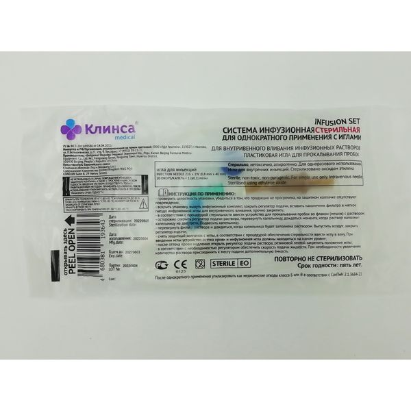 Инфузионная система для переливания / система для переливания крови / инфузионный прибор с иглой.