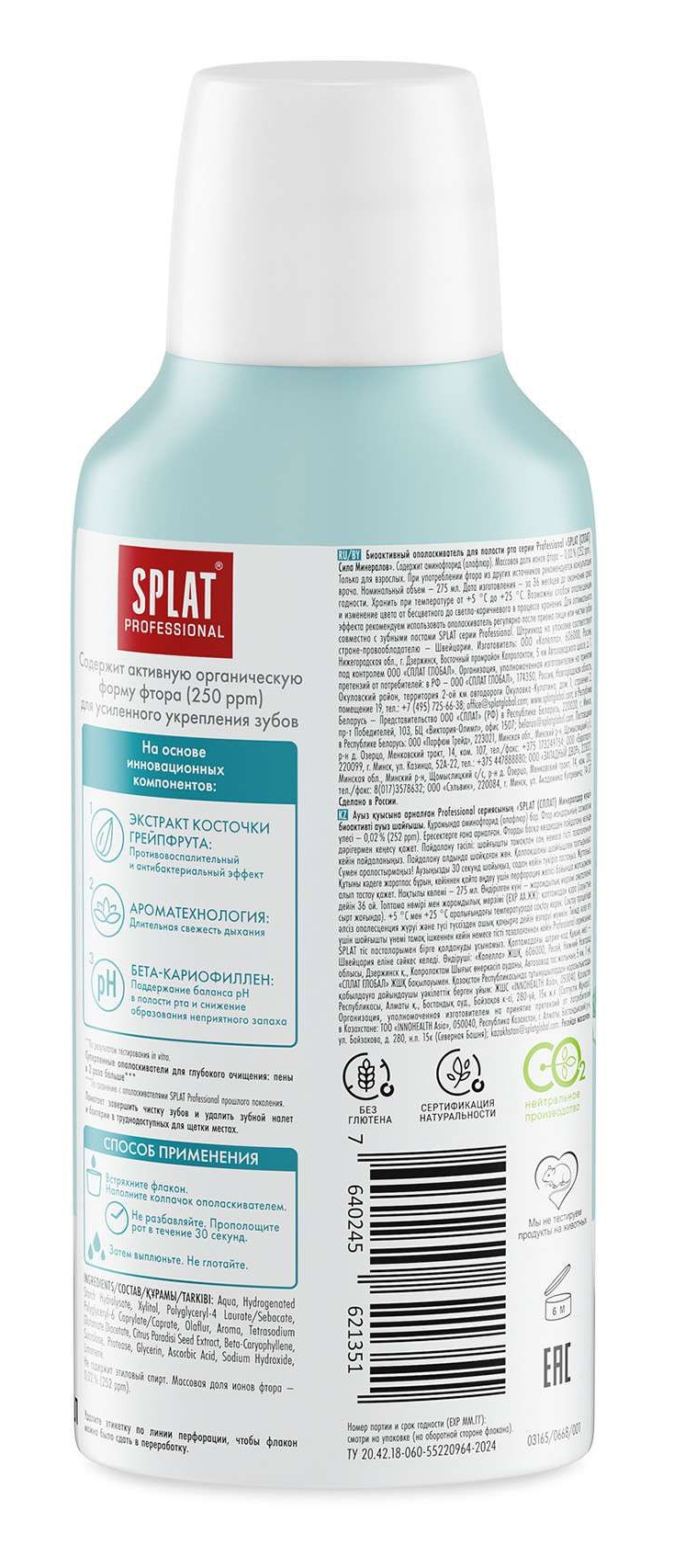 Профилактический ополаскиватель для полости рта Splat Professional Сила минералов с экстрактом косточки грейпфрута позволяет достичь максимальной защиты всей полости рта. Средство для защиты десен укрепляет десны, нормализует обменные процессы в мягких тканях полости рта.