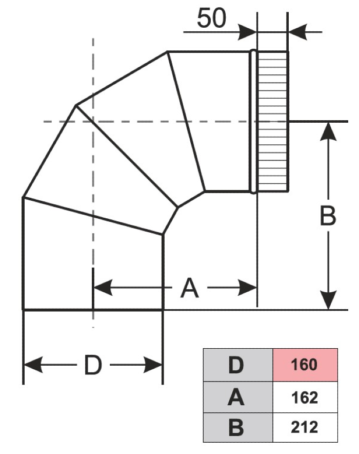 - Угол для дымохода Сталь Мастер одностенный, 90 градусов, из нержавеющей стали, серый металлик, диаметр 160мм - 1шт.