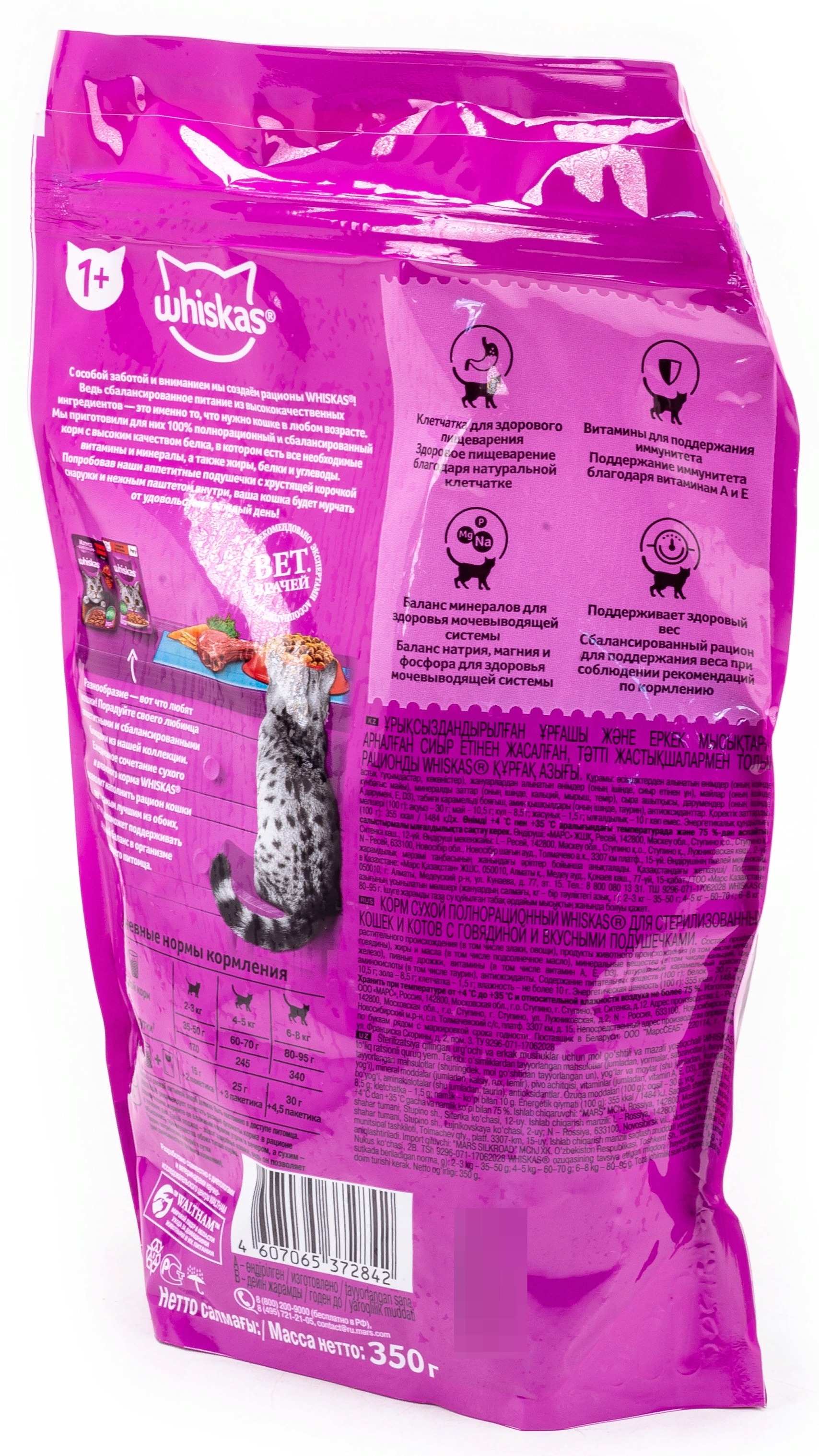Whiskas для стерилизованных кошек и котов — это сбалансированный рацион, который содержит специальный минеральный комплекс, необходимый для здоровья мочевыводящей системы вашей любимицы.
