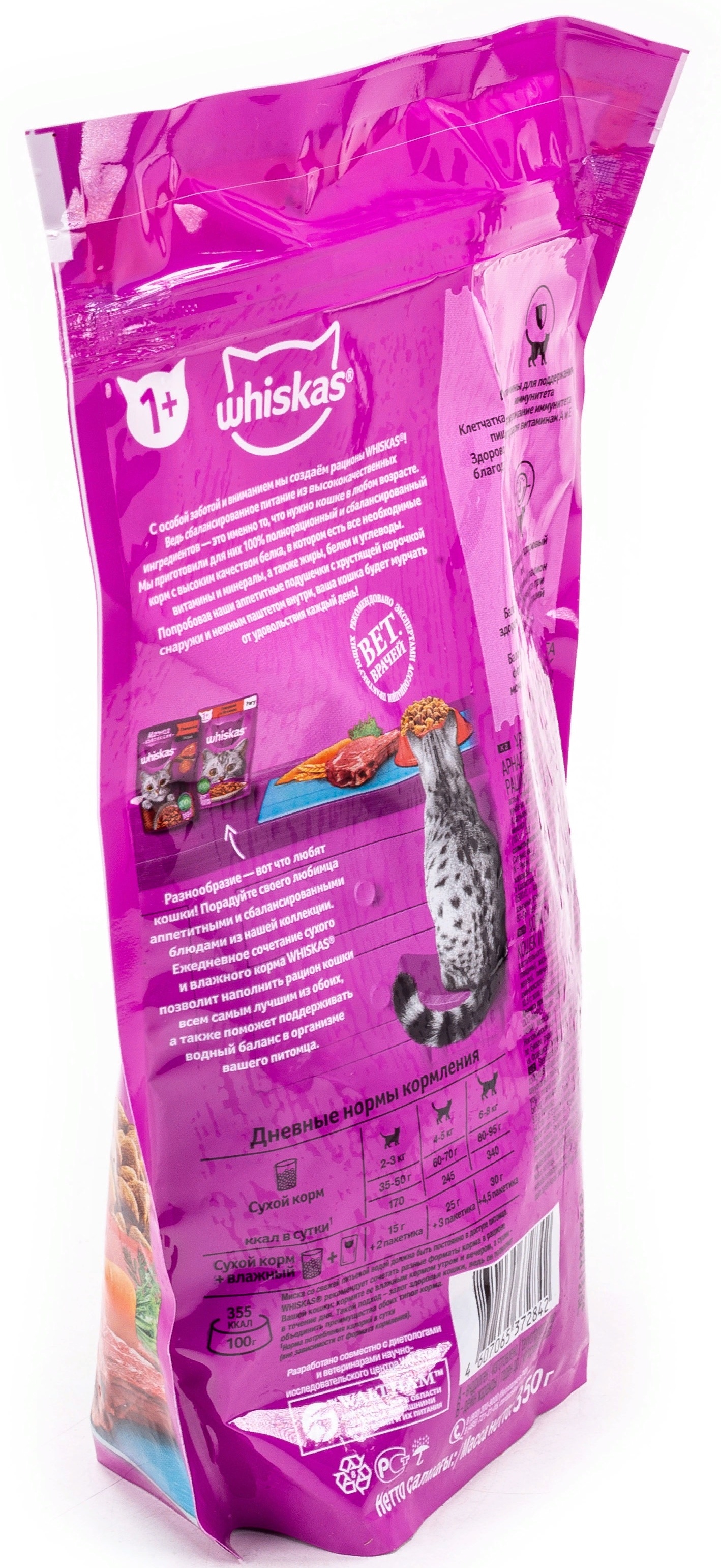 Нужно помнить, что смешивать в одной миске сухой и влажный рационы не рекомендуется. Кроме того, у вашей любимицы всегда должен быть доступ к чистой питьевой воде. Рационы Whiskas содержат все необходимые витамины и минералы, белки, жиры и углеводы, чтобы поддержать здоровье Вашей кошки от усов до кончика хвоста.