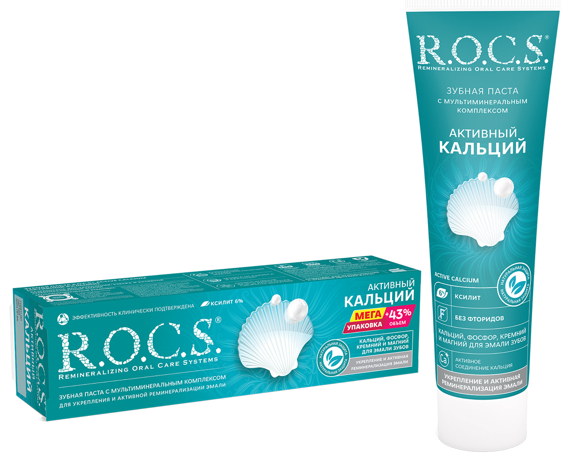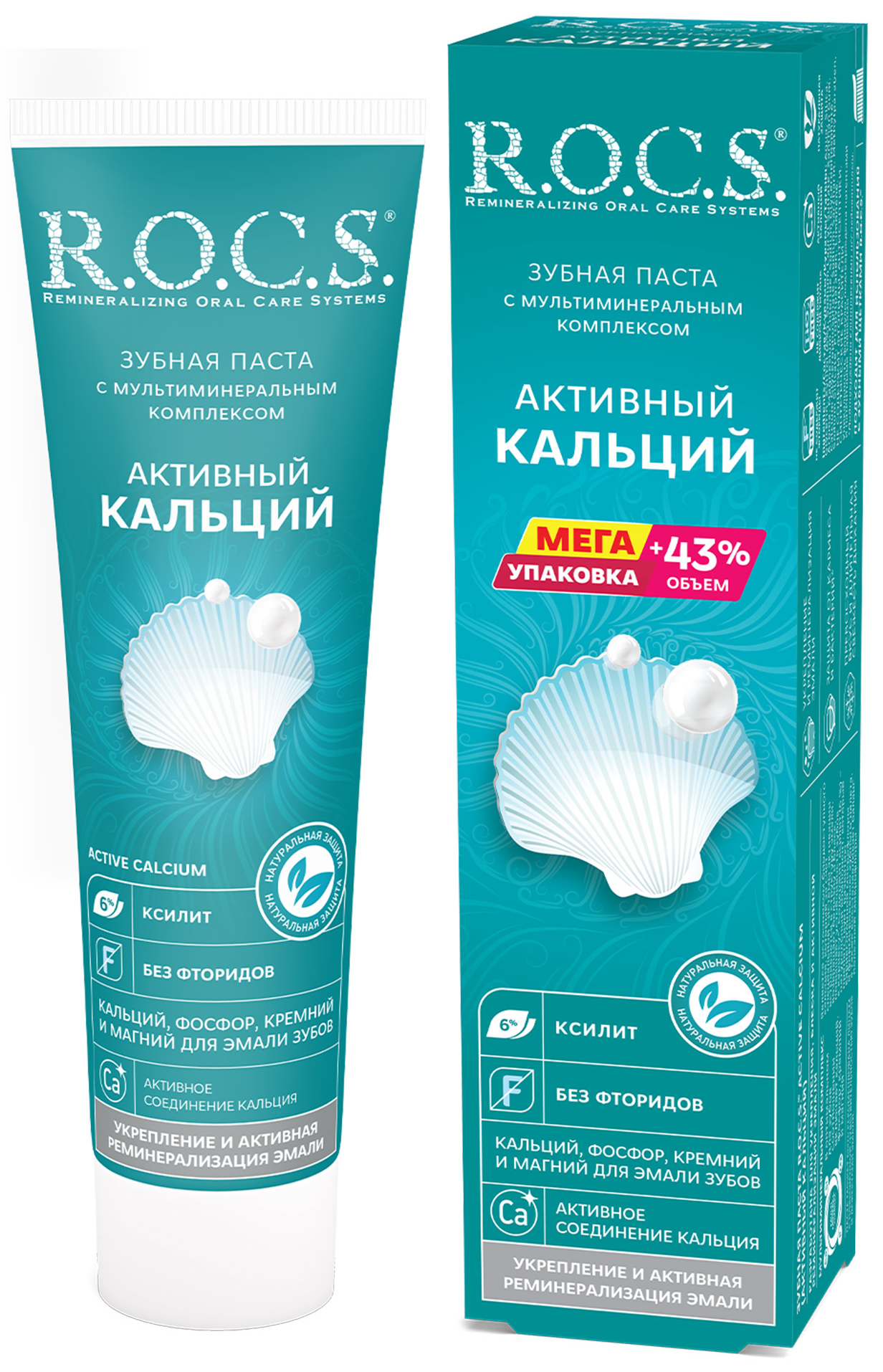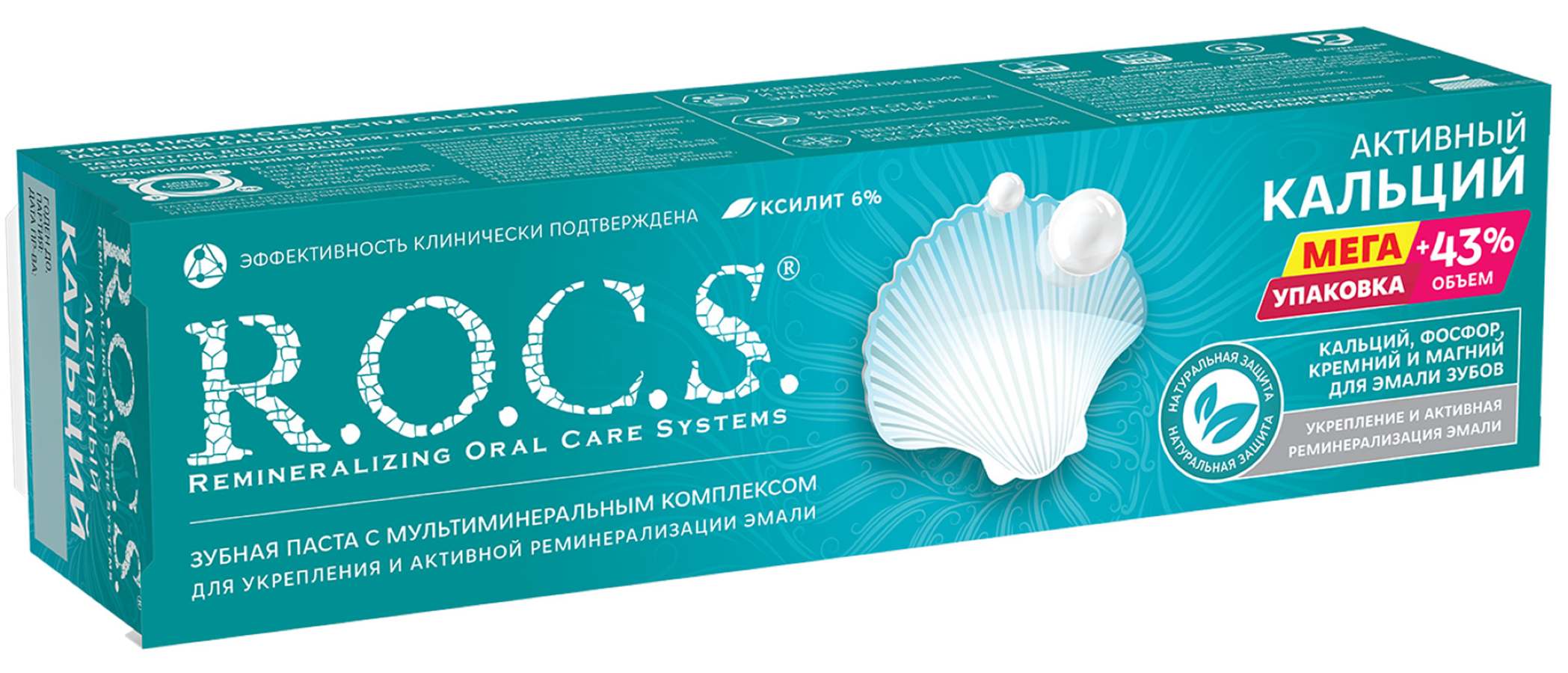 Компонентной основой зубной пасты R.O.C.S. Активный кальций является запатентованный мультиминеральный комплекс, в состав которого включены основные необходимые компоненты магний, фосфор, кальций и кремний, содержащиеся в пропорциях, оптимальных для здоровья зубов и ротовой полости. Дополнительный положительный эффект оказывает натуральный компонент ксилитол (6%), снижающий развитие кариесогенной микрофлоры.