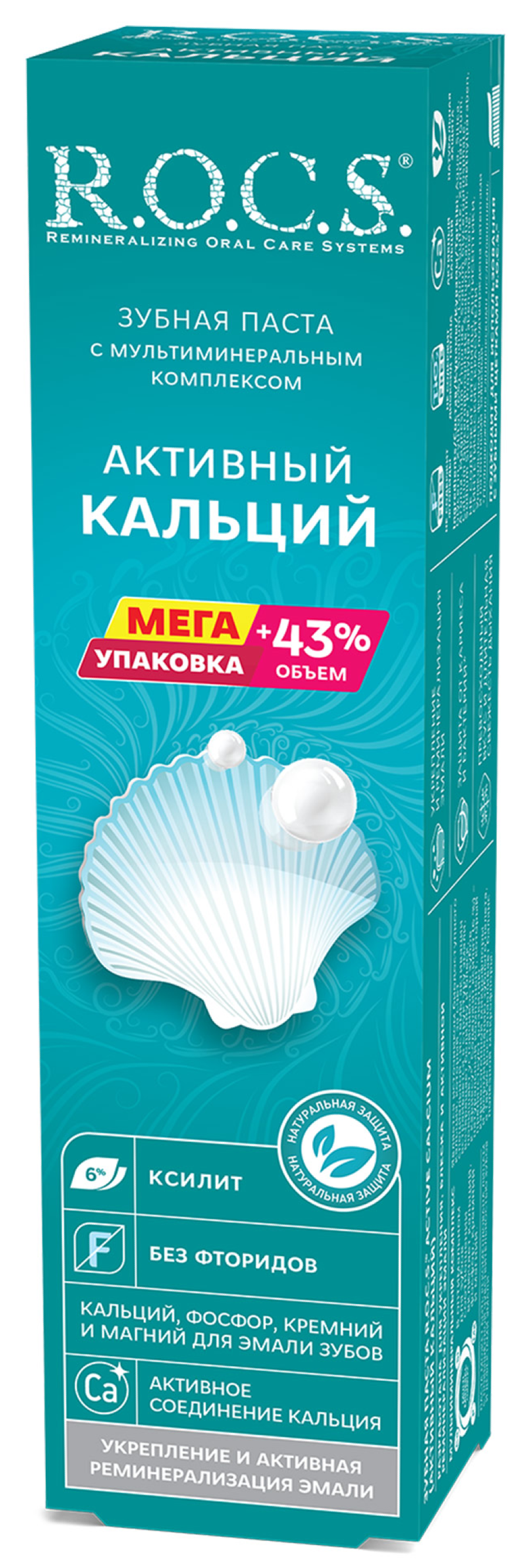 R.O.C.S. Активный кальций Зубная паста с мультиминеральным комплексом для укрепления и реминерализации эмали. Паста зубная предназначена для ежедневной гигиены полости рта с целью обеспечения длительной защиты от кариеса, снижения растворимости и укрепления зубной эмали.