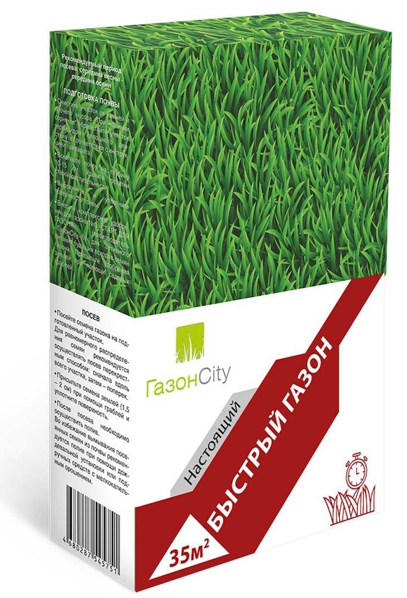 Семена газона ГазонCity Быстрый предназначены для высева на дачном участке, территории загородного дома, парка, сквера. Отличается быстрой всхожестью и неприхотливостью. Одной пачки хватает на посев на площади 35 кв.м.