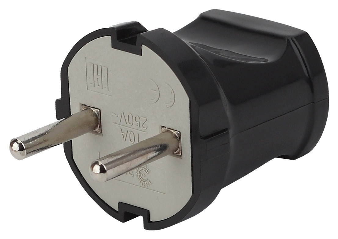 Вилка электрическая ЭРА Б0039672 без заземления, евро, прямая, в пластиковом корпусе, черная, 10А, IP20 / электрика