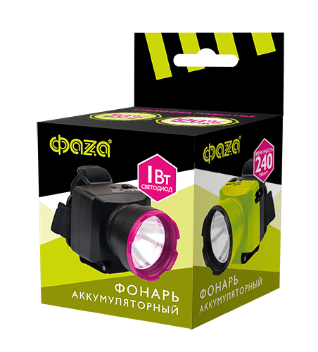 Фонарь налобный светодиодный Фаzа / Фаза AccuFH5-L3W/L3W на аккумуляторе LI-ION 18650, IP44 220Лм, 5031241 / на голову