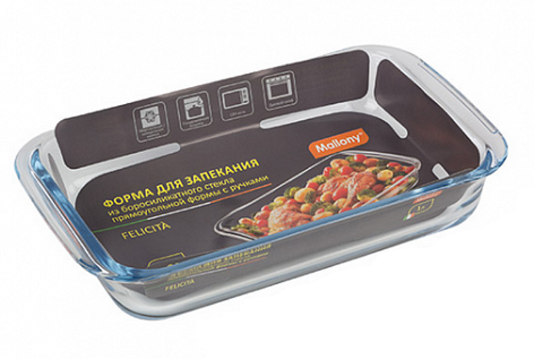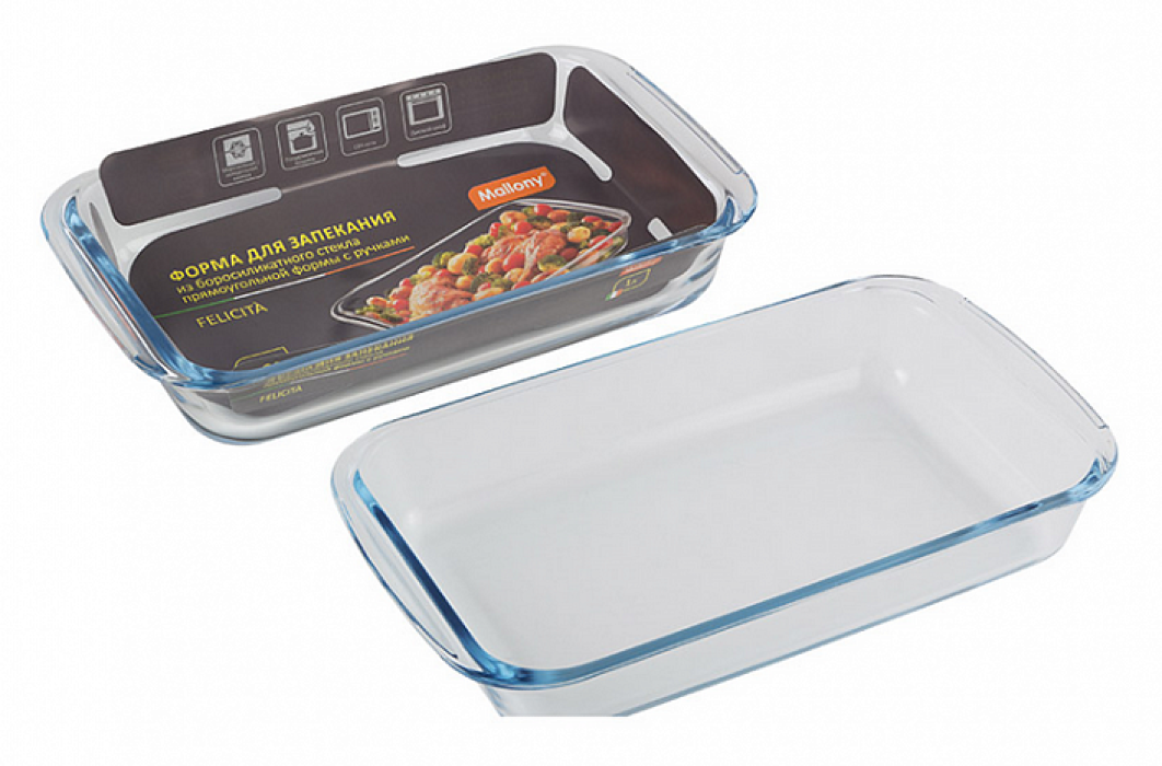 - Форма для выпечки и запекания Mallony Felicita из стекла, прямоугольная, 25.8х15.3х4.5см, 1л - 1шт.