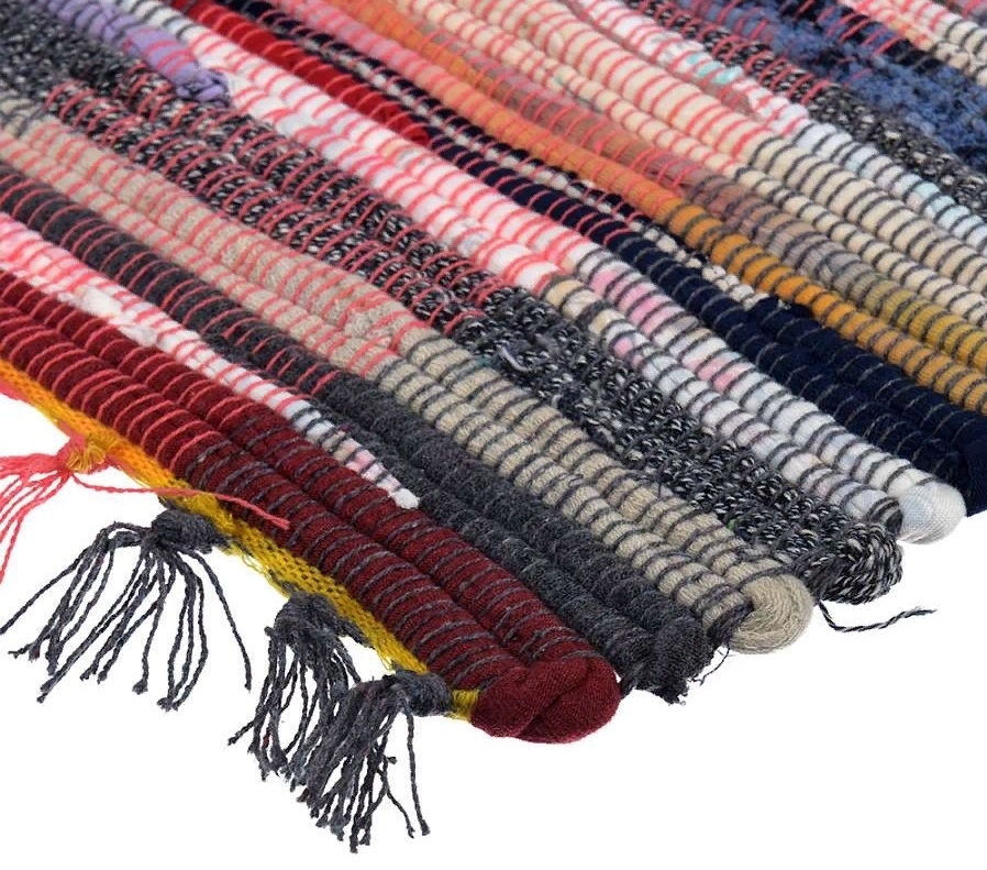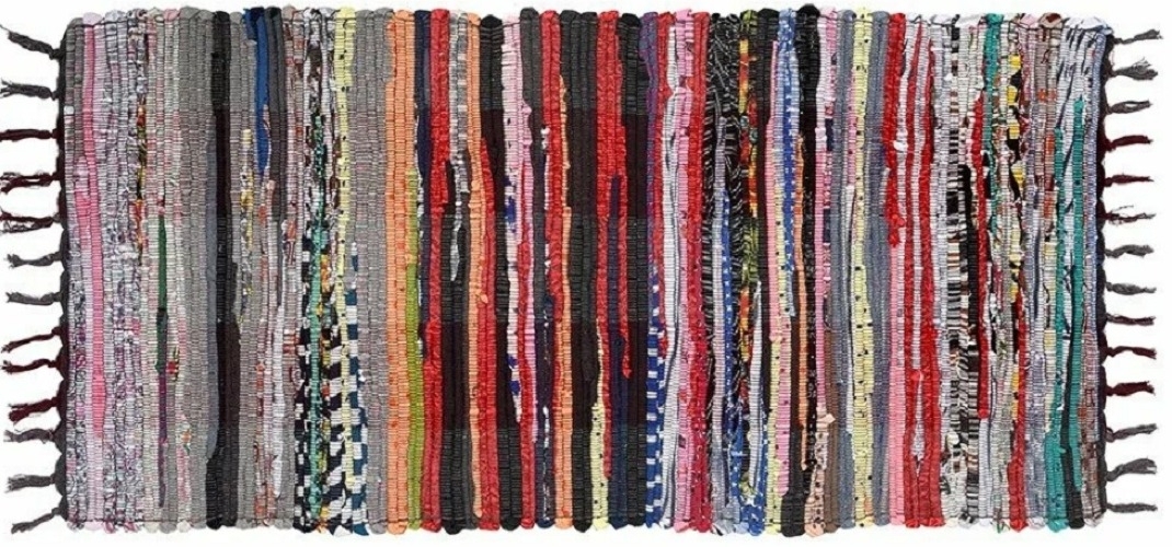 Коврик хлопковый напольный изготавливается вручную из разноцветных лоскутков ткани в технике объемного лоскутного плетения. Так как в производстве используются разноцветные лоскутки ткани, каждый коврик уникальный в своей расцветке. Коврик выполнен из 100% хлопка с использованием техники объемного лоскутного плетения. Универсальный коврик, подойдет как коврик для прихожей, коврик для детской комнаты, коврик для лоджии, коврик для дачи, ковер в гостиную или как ковер на кухню. Также ковровая дорожка подойдет в качестве накидки для кресла, для дивана, для шезлонга. Отличный подарок для праздника.