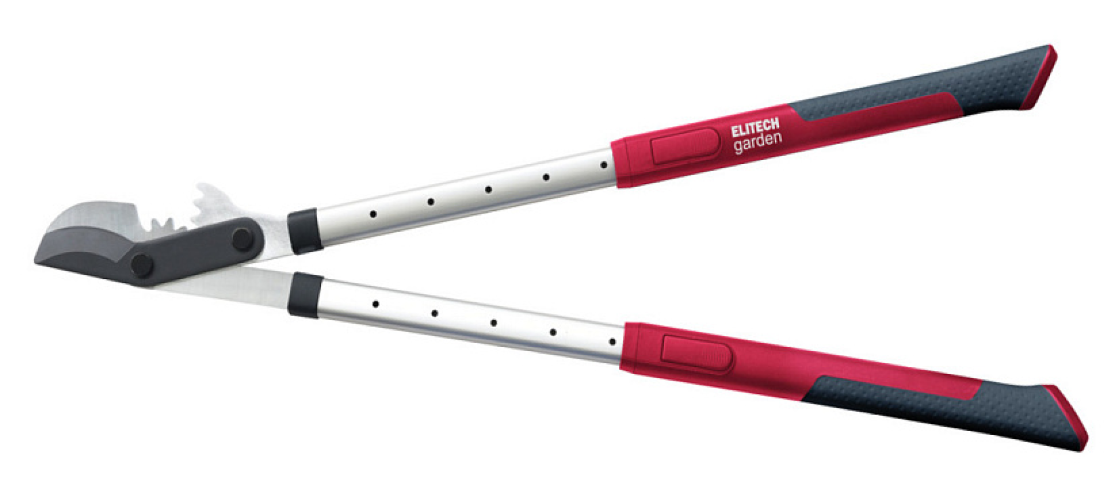 Плоскостной телескопический сучкорез длиной 630-820 мм применяется для резки крупных веток и сучков максимальным диаметром до 50 мм. Лезвия из углеродистой стали SK5 с антикоррозийным покрытием. Эргономичные ручки с покрытием из нескользящего материла для комфортного захвата. Ножницы с телескопическими ручками оснащены зубчатой передачей, что позволяет вдвое снизить прилагаемые усилия. Длина ручек регулируется в диапазоне от 45 до70 см. и имеет 4 фиксированных положения. Для качественной заточки лезвий рекомендуется использовать точилку для режущего инструмента Elitech garden MS 7C.