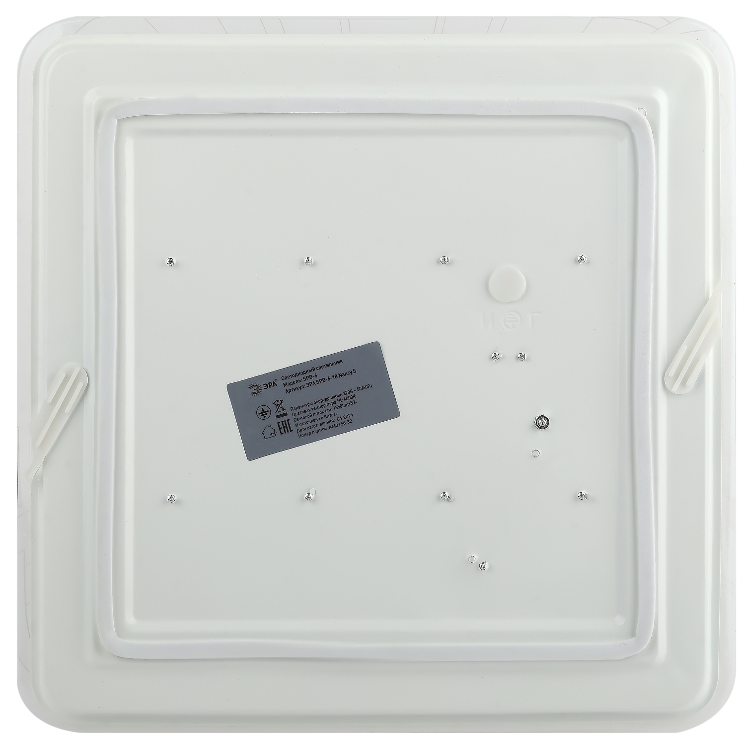 Светильник светодиодный ЭРА SPB-6-18 потолочный квадратный, пластиковый, 4000К, 1350Лм, нейтральный белый, 220В, IP20, 18Вт / освещение