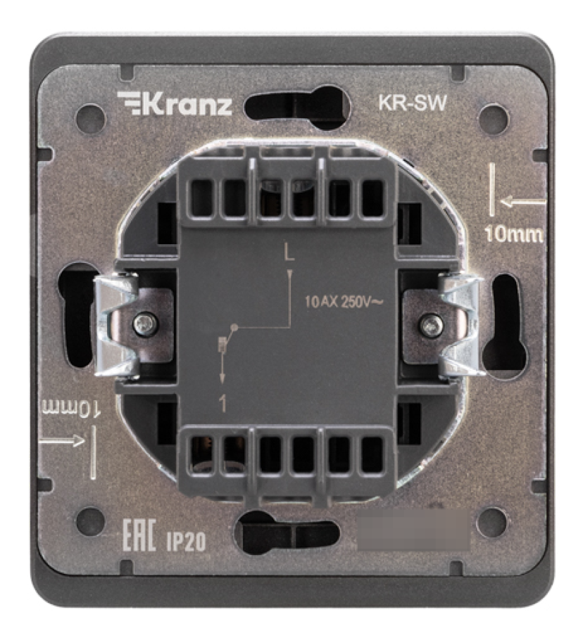 Механизм одноклавишного выключателя скрытой установки KRANZ предназначен для подключения к электрической сети внутри помещений. Используется для включения и выключения света.