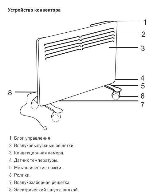 Конвекторный обогреватель имеет интуитивно простую систему управления. В нем установлен монолитный нагревательный элемент нового поколения. Безопасная эксплуатация обеспечивается многоуровневой системой защиты. Устройство мобильное, устанавливается в любом удобном месте.