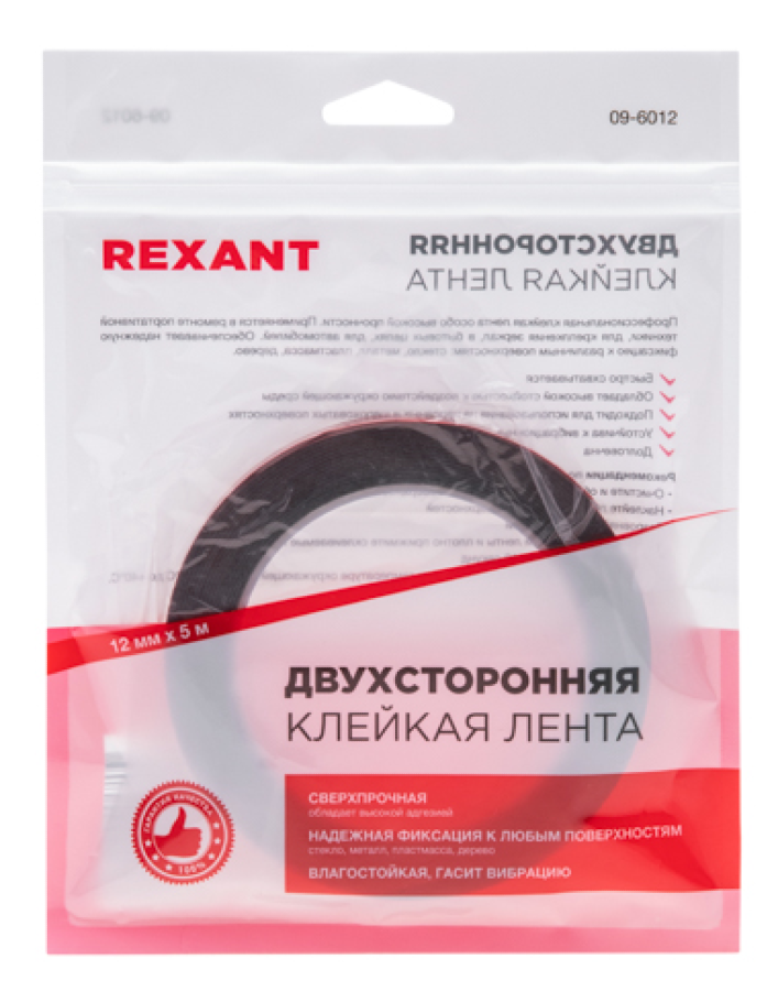 Скотч двухсторонний REXANT демонстрирует стойкость к ультрафиолету, маслам и растворителям, что позволяет использовать его как внутри помещений, так и на улице. Он не теряет своих свойств под воздействием внешней среды, гарантируя долговечность результата даже в сложных условиях.