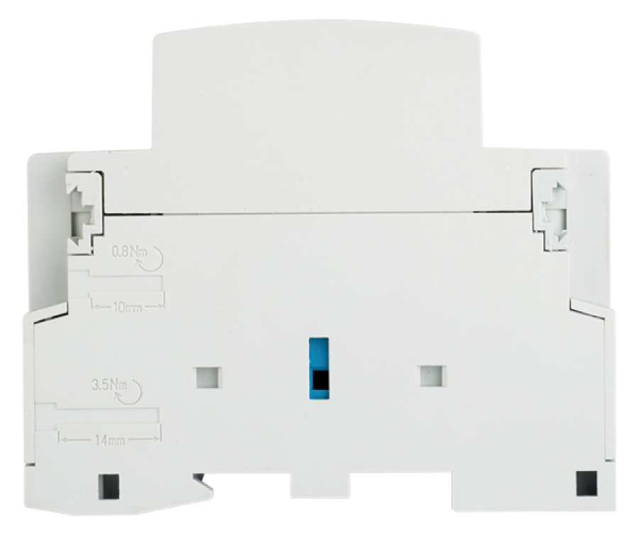 Модульные контакторы представляют из себя контактор в классическом корпусе модульного оборудования. Он состоит из неподвижных контактов, подвижных контактов, которые закреплены в подвижной части магнитной системы. Неподвижная часть магнитной системы закреплена жестко в корпусе КМ. Пружина препятствует смыканию контактов. При подаче напряжения на катушку управления в магнитной системе контактора возникает магнитное поле, которое, преодолевая сопротивление пружины, смыкает магнитную систему и замыкает контакты. При отключении напряжения с катушки управления пружина размыкает контакты. Возможна коммутация алюминиевым и медным проводом.