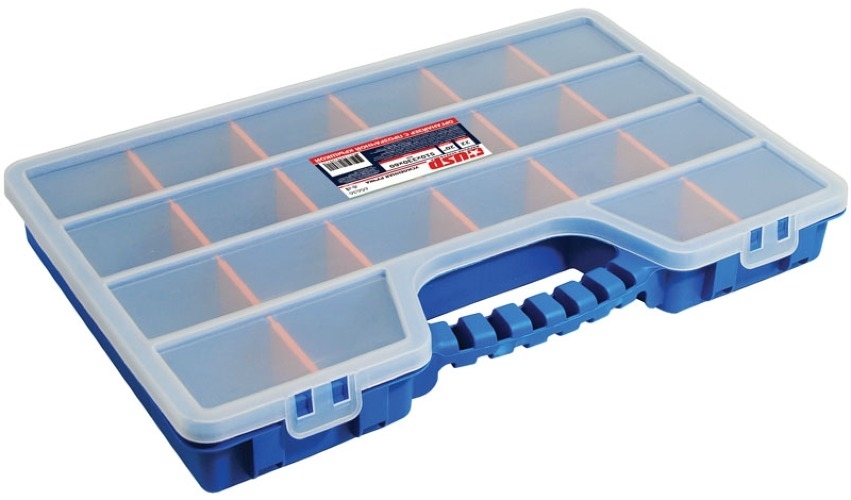 Органайзер для хранения имеет удобное внутреннее деление на 22 отсека. Это означает всегда быстрый доступ к содержимому. Съемные перегородки позволяют менять пространство под индивидуальные потребности. Прозрачная крышка плотно фиксируется и не дает деталям внутри перемешиваться.