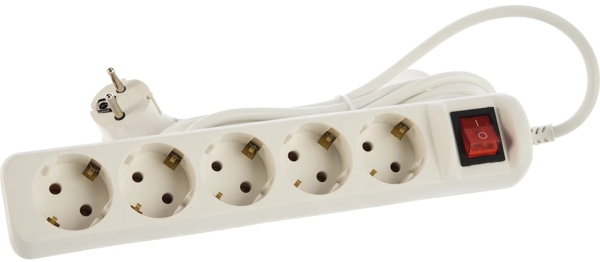 Удлинитель бытовой Эра U с заземлением и выключателем, белый, 5 розеток, длина 3м, 16А, IP20 / электрика