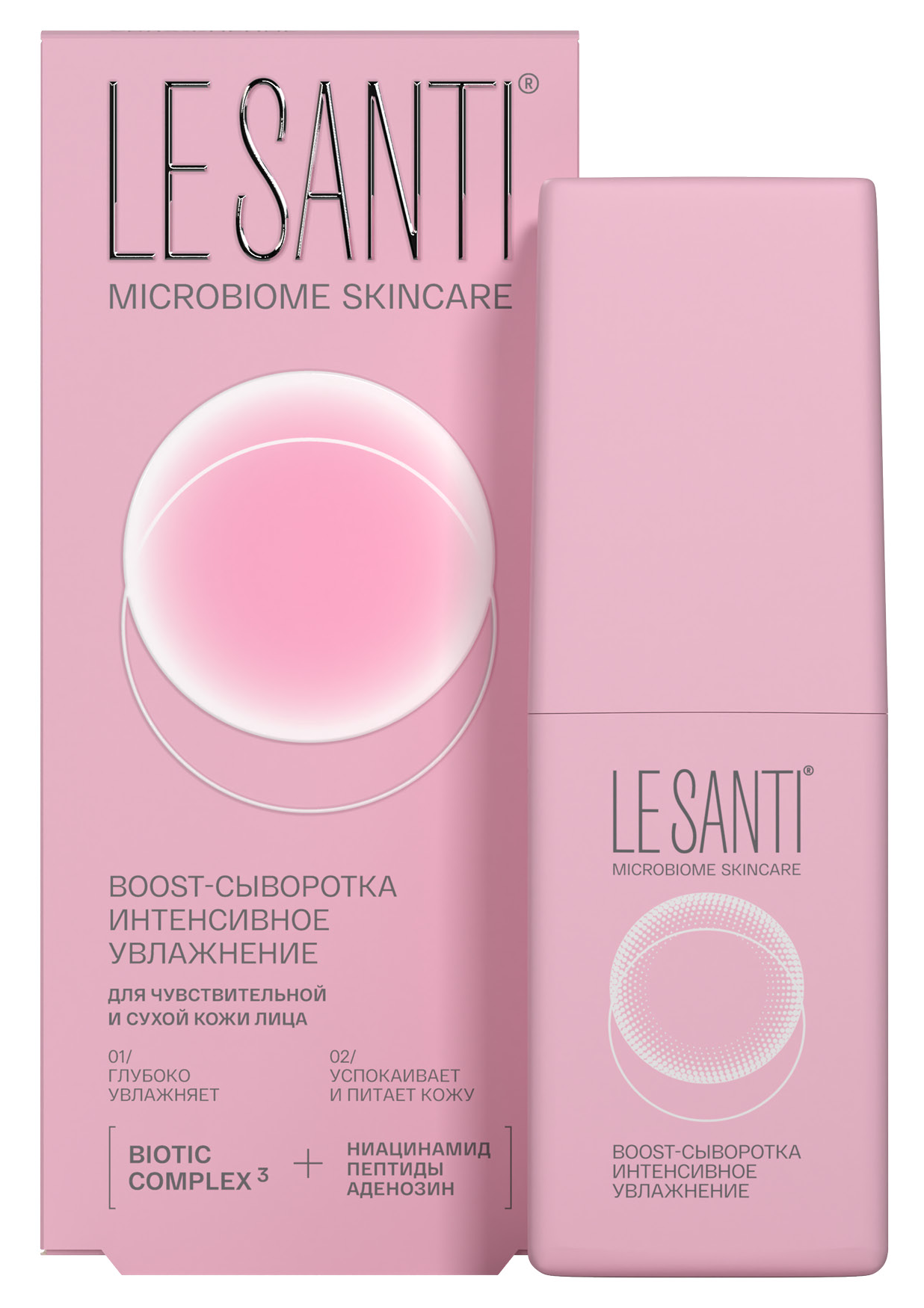 Увлажняющая сыворотка для лица Le santi Microbiome Skincare предназначена для сухой и чувствительной кожи. Ее нежная, кремообразная текстура способствует легкому нанесению, имеет едва уловимый, приятный косметический аромат, быстро впитывается.