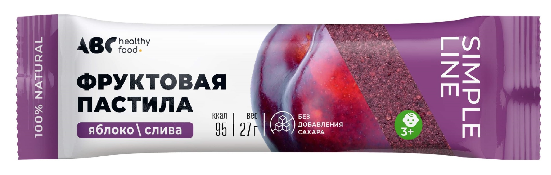 Пастила фруктовая ABC healthy food / АВС Хелси фуд Яблоко и слива без сахара 27г / полезные сладости