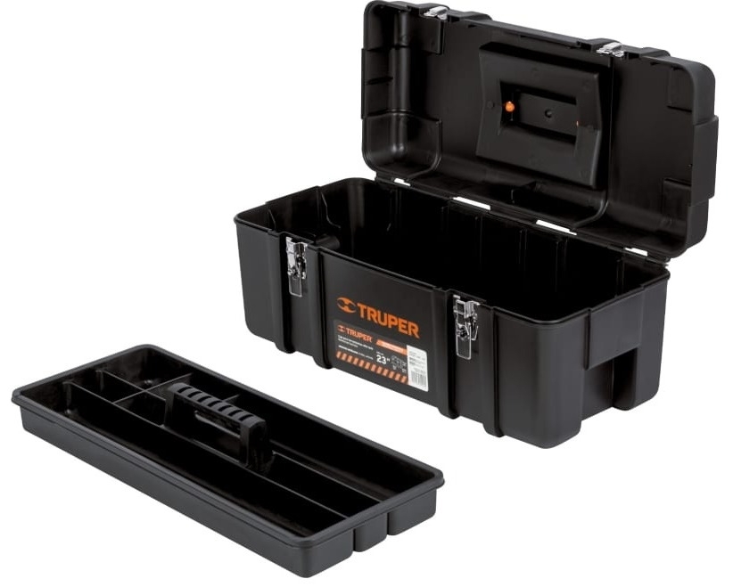 Ящик для инструментов TRUPER / Трупер СНР-23Х с внутренним лотком и металлическими замками, из пластика, черный, 580х270х250мм / оборудование для мастерской