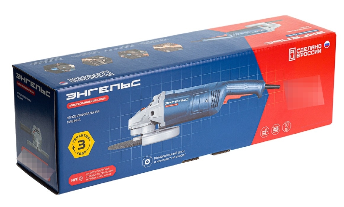 - Шлифмашина угловая Энгельс УШМ 24-230 сетевая, посадочный диаметр 22.23мм, М14, диск 230мм, 230В, 6600об/мин, 2400Вт - 1шт.