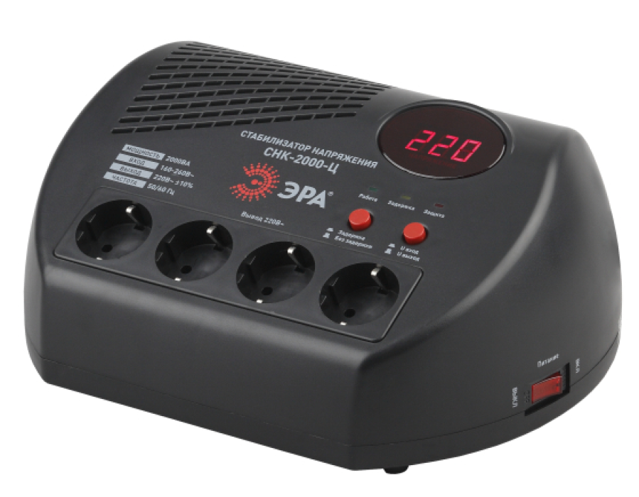 Эффективную работу различного промышленного и бытового оборудования обеспечивают множество различных устройств. Например, стабилизатор ЭРА СНК-2000-Ц релейный однофазный.