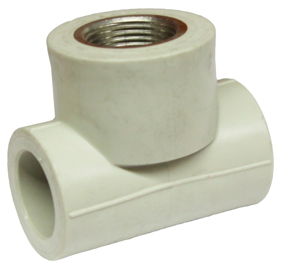 Тройник FV-Plast / ФВ-Пласт для труб, с металлической внутренней резьбой 1/2", полипропиленовый, серый, диаметр 20мм / водоснабжение