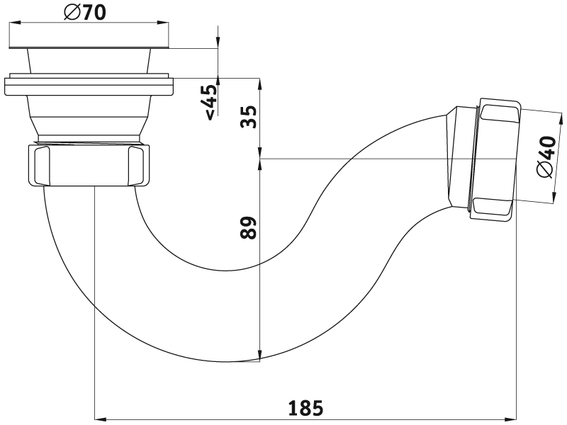 Благодаря своей форме прямоточный сифон имеет высокую пропускную способность и практически не засоряется.
