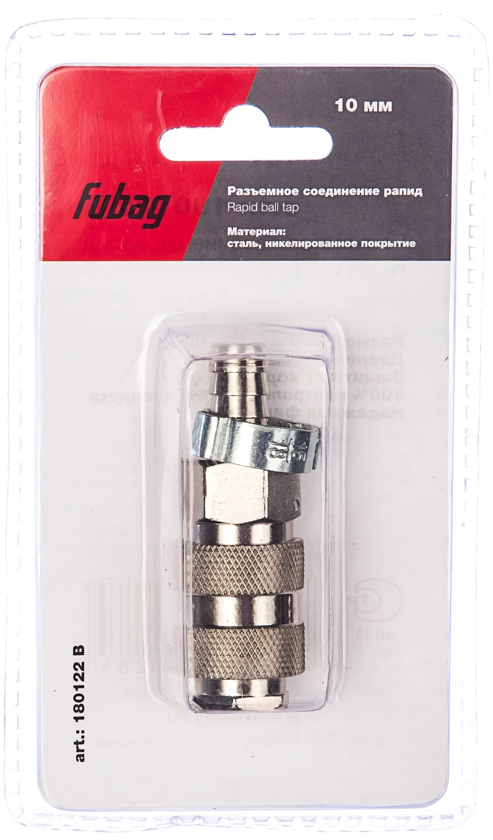 Никелированное покрытие стальной конструкции разъемного соединения Fubag гарантирует защиту от коррозии и долговечность даже при активной эксплуатации.