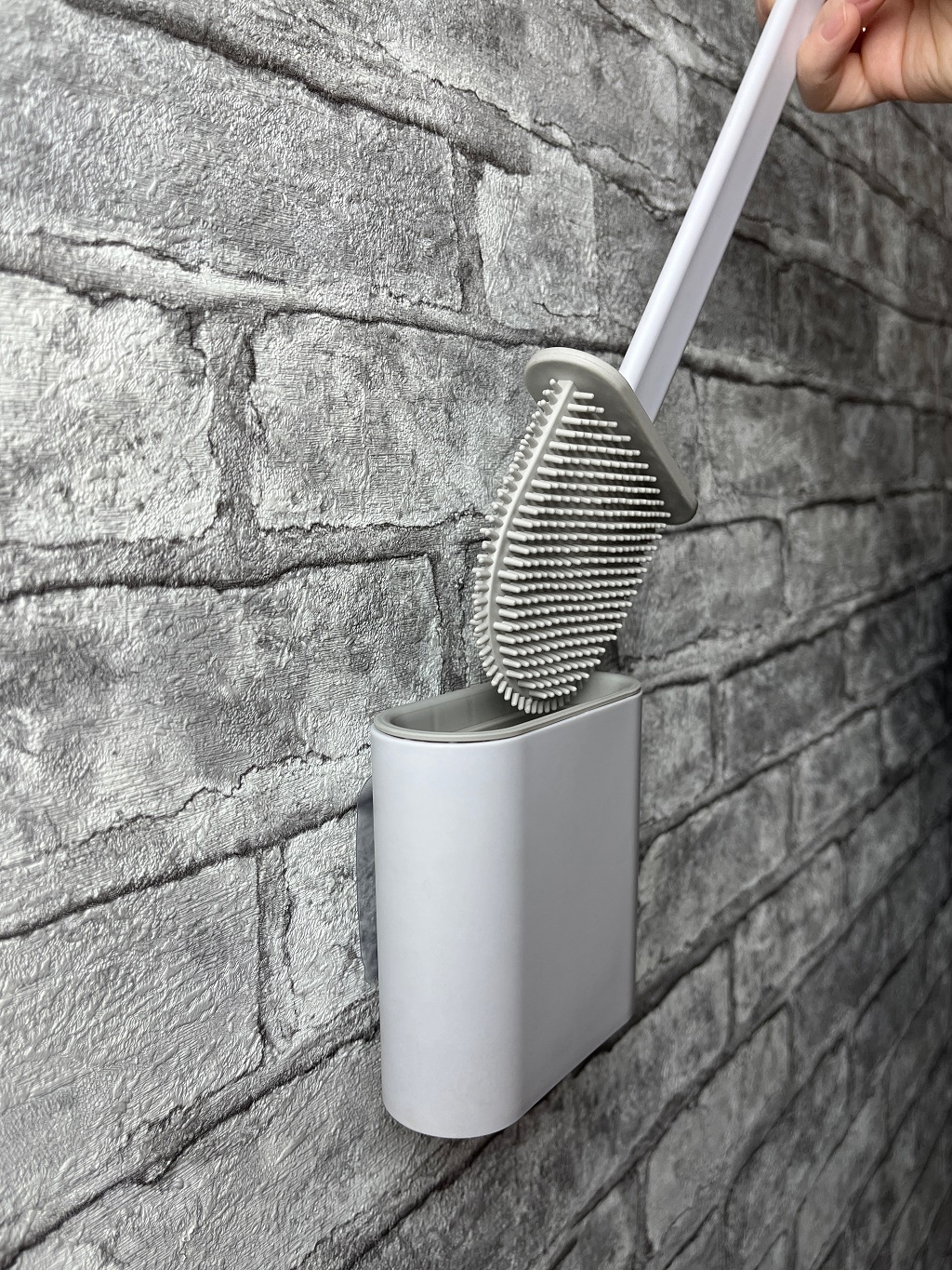 Ершик для унитаза Kleber / Клебер Lite подвесной, из силикона, серый, размером 350х100х100мм / товары для дома