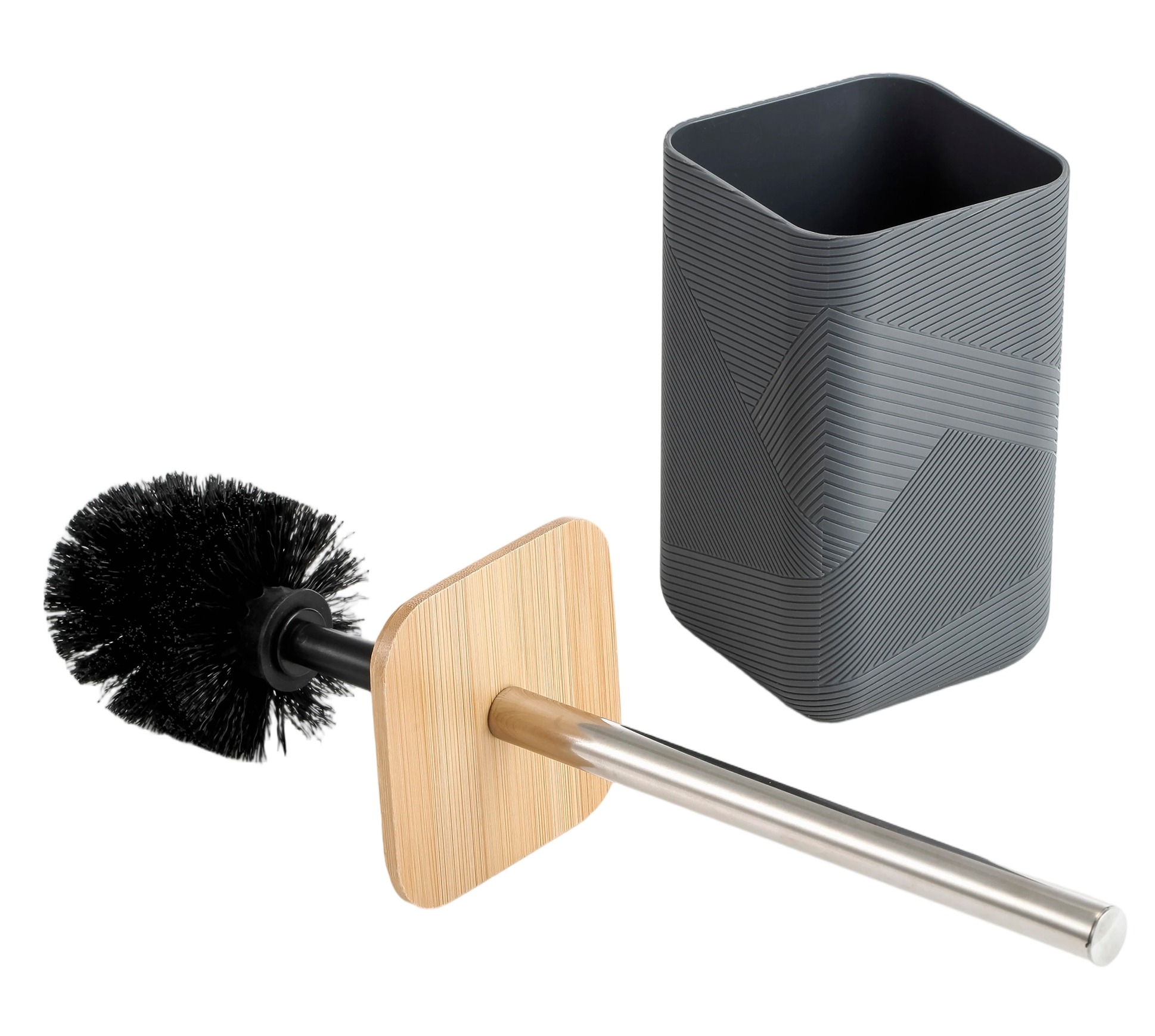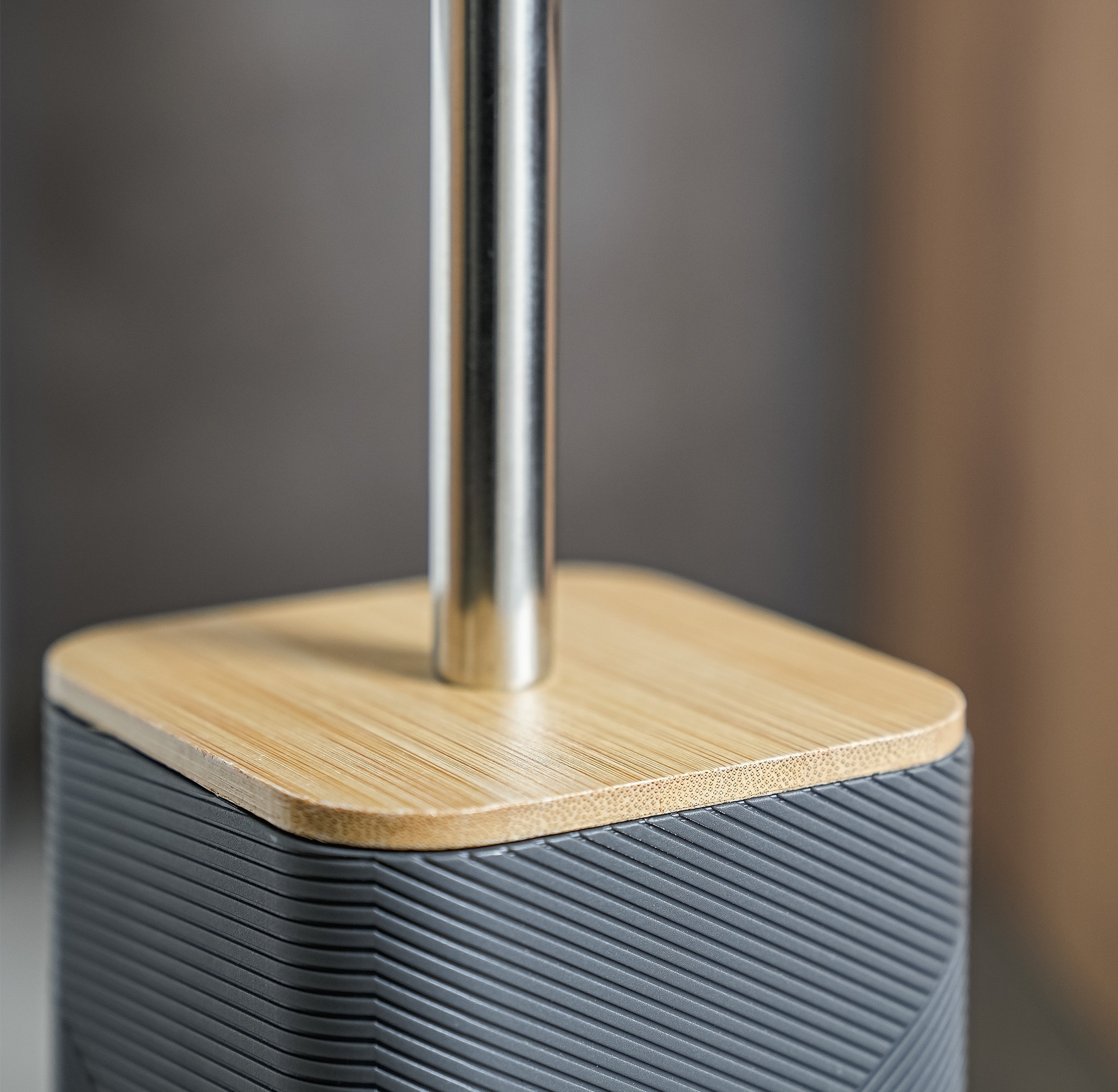 Напольный ерш FORA из коллекции TROPICANA — это гармоничное сочетание современного дизайна и природной эстетики. Модель выполнена в актуальном сером цвете, где практичный пластик органично сочетается с теплыми бамбуковыми элементами и стильными хромированными аксессуарами. Такой оригинальный дуэт материалов создает универсальный аксессуар, который легко впишется в любой интерьер — от скандинавского минимализма до эко-лофта, добавляя пространству функциональности, тактильного тепла и современной выразительности.
