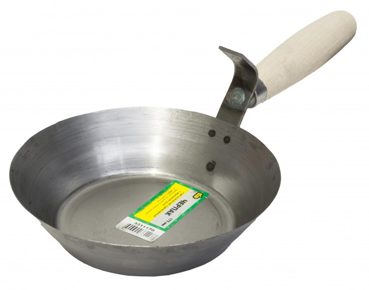 Штукатурный ковш широко используется для проведения отделочных работ. Ковшом производят забор и накидывание различных строительных смесей на необходимые обрабатываемые поверхности. Инструмент обладает высоким рабочим ресурсом, так как его основной элемент — чаша, изготовлен из прочной стали. Данная модель предназначена для клеевого раствора.