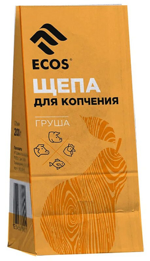 Щепа для копчения ECOS / Экос Груша для приготовления мяса, рыбы и птицы, из древесины фруктовых пород, 200г / товары для дома