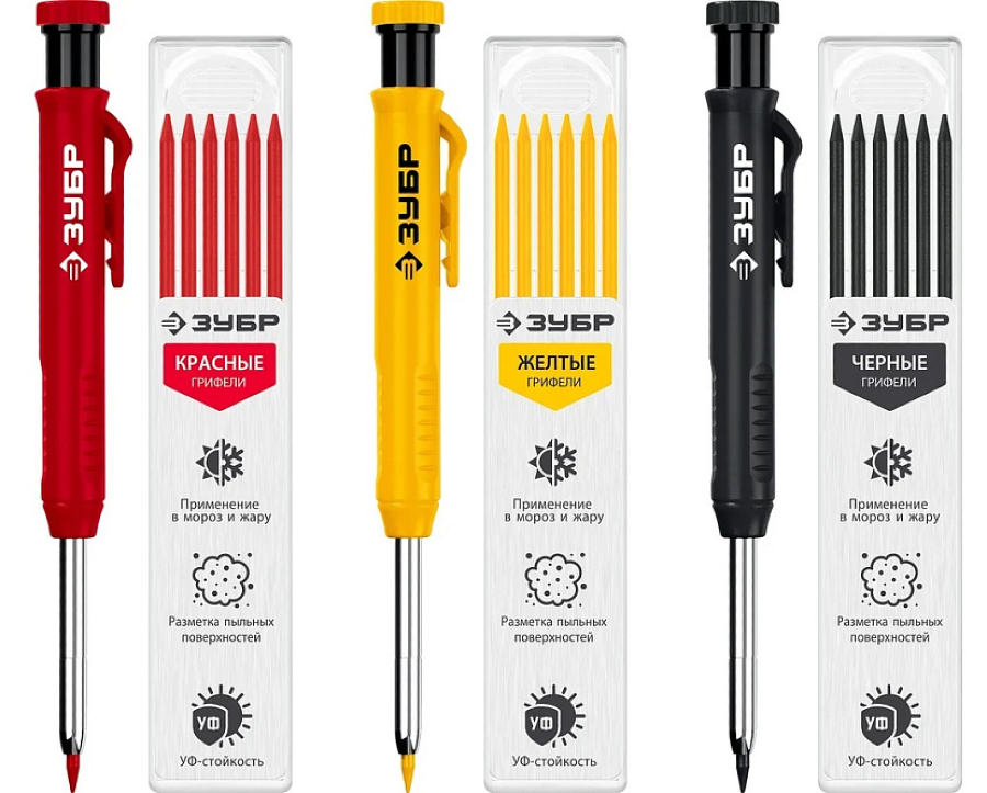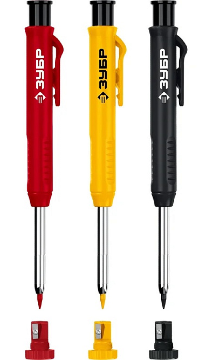 Карандаш Зубр строительный, автоматический, 18 грифелей, красный/желтый/черный, длина 149мм, в упаковке 3шт. / инструменты для ремонта и строительства