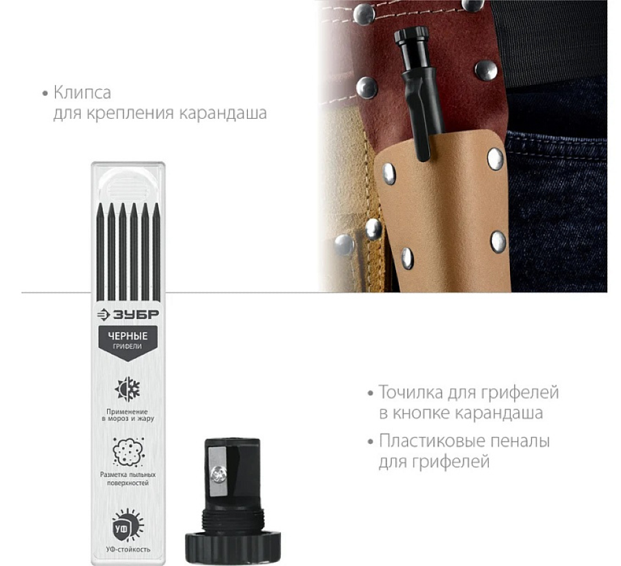 Карандаш разметочный Зубр станет незаменимым помощником при выполнении строительных задач. Сочетание эргономики, прочности и износостойкости графита подтверждает профессиональный уровень инструмента для ежедневного применения.