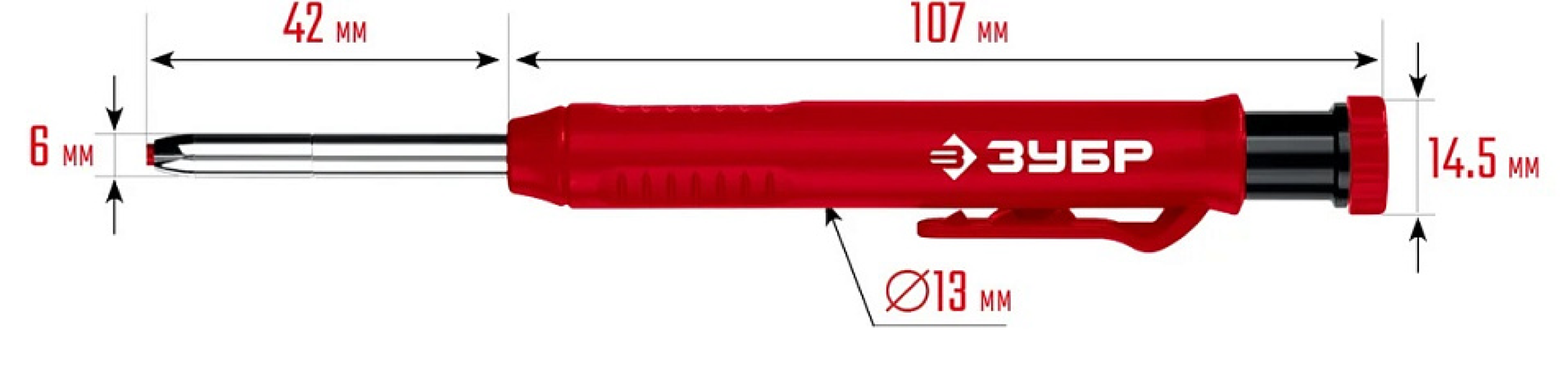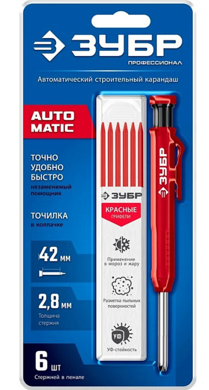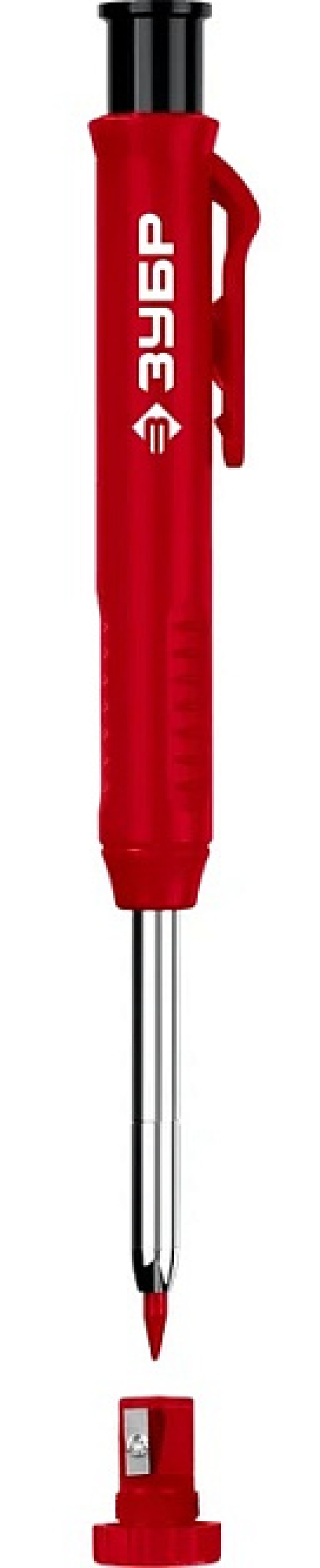 Карандаш Зубр строительный, автоматический, 6 грифелей, красный, длина 149мм / инструменты для ремонта и строительства