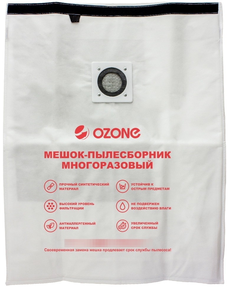 Мешок для пылесоса OZONE / Озон XT-5031 многоразовый, универсальный, вертикальное расположение, синтетический, 36л, 1шт. / товары для дома