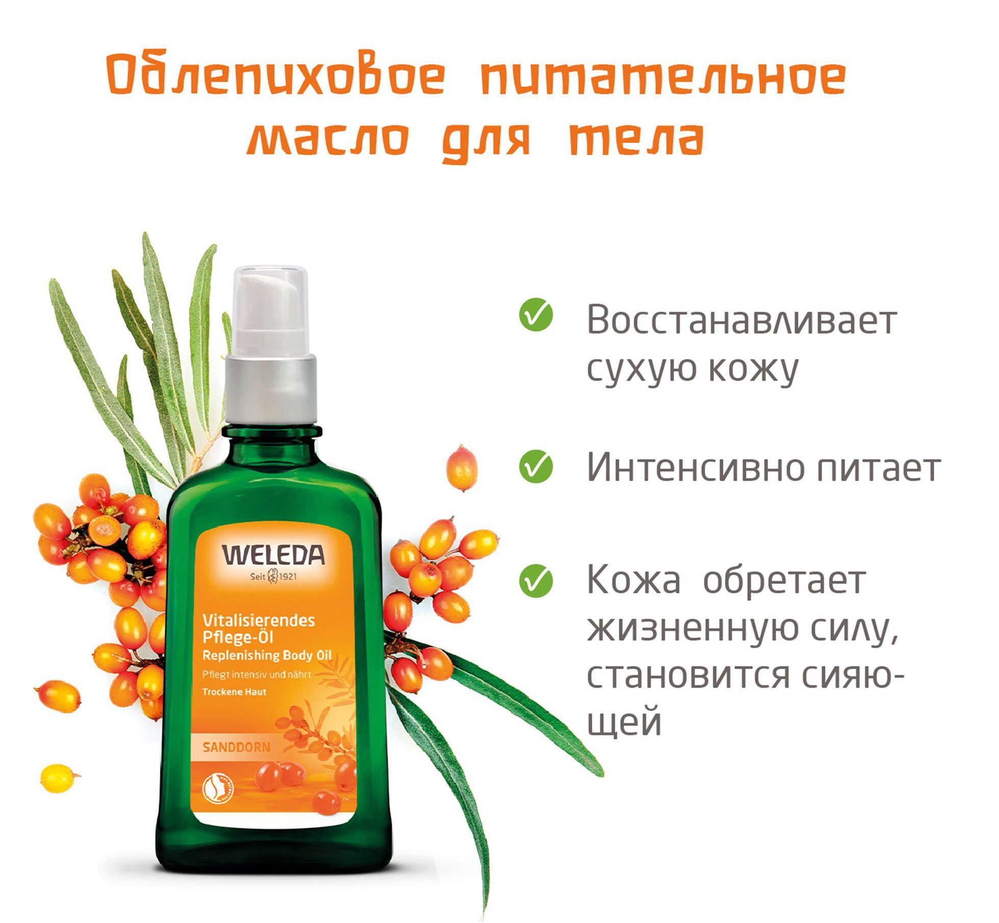 Weleda / Веледа SANDDORN Масло косметическое облепиховое питательное, для ухода за кожей, 100мл / уходовая косметика